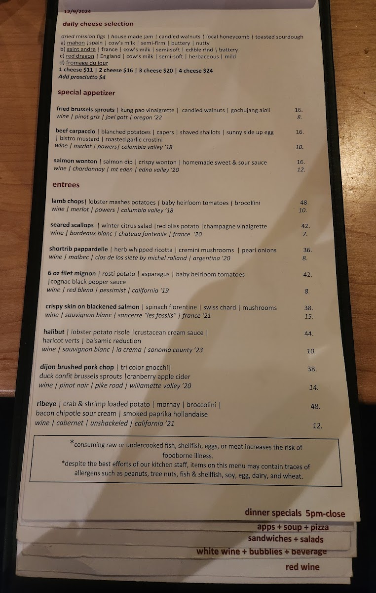 baby spring mix, crisp romaine, candied walnuts, prosciutto ham, medjool dates, goat cheese stuffed sourdough croutons, tomato basil vinaigrette, warm blossom honey drizzle